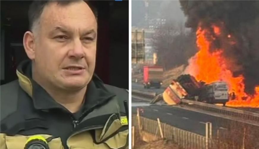 Na štajerski avtocesti pri Slovenski Bistrici se je danes zjutraj zgodila huda prometna nesreča, v kateri sta bila udeležena kombi in cisterna z gorivom. Nesreča se je zgodila okoli 8. ure, ko se je cisterna, ki je vozila v smeri proti Mariboru, po prvih informacijah prevrnila in zdrsnila na nasprotno smerno vozišče proti Ljubljani. Tam je trčila v kombi, v katerem sta bila voznik in sopotnik. Vozili sta ob trku zagoreli.